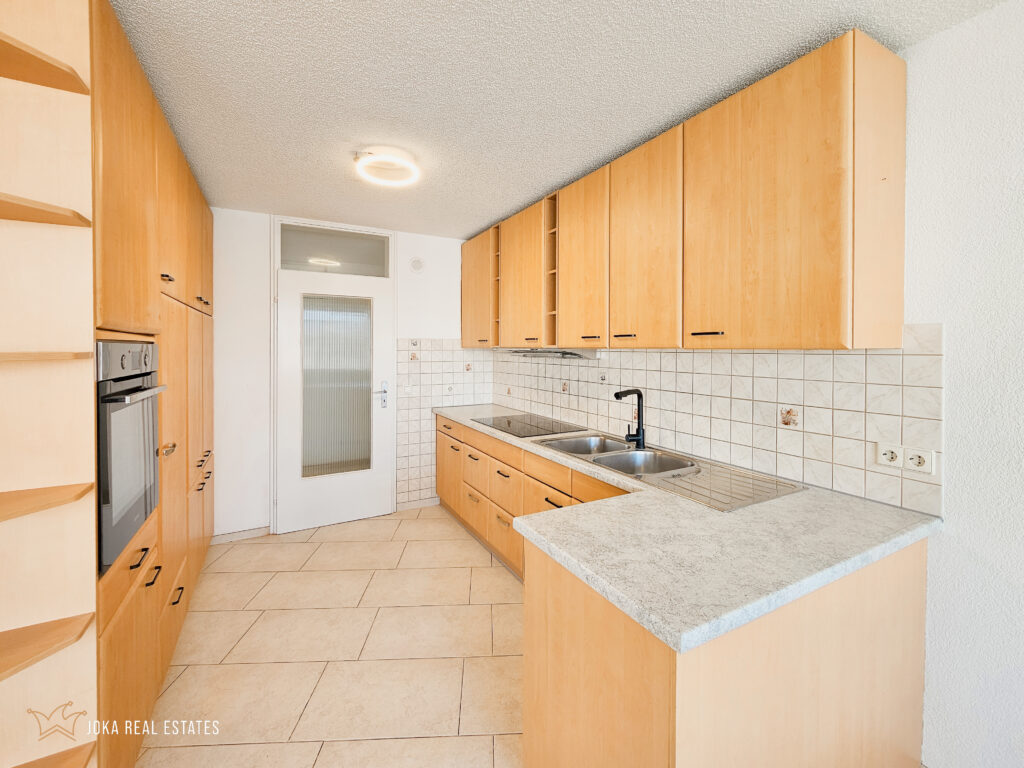 Die Wohnung verfügt über 115 m² Wohnfläche, 4,5 Zimmer davon 3 Schlafzimmer, ein Bad mit Dusche sowie ein separates WC. Der Bodenbelag besteht aus Fliesen, eine Einbauküche ist vorhanden.